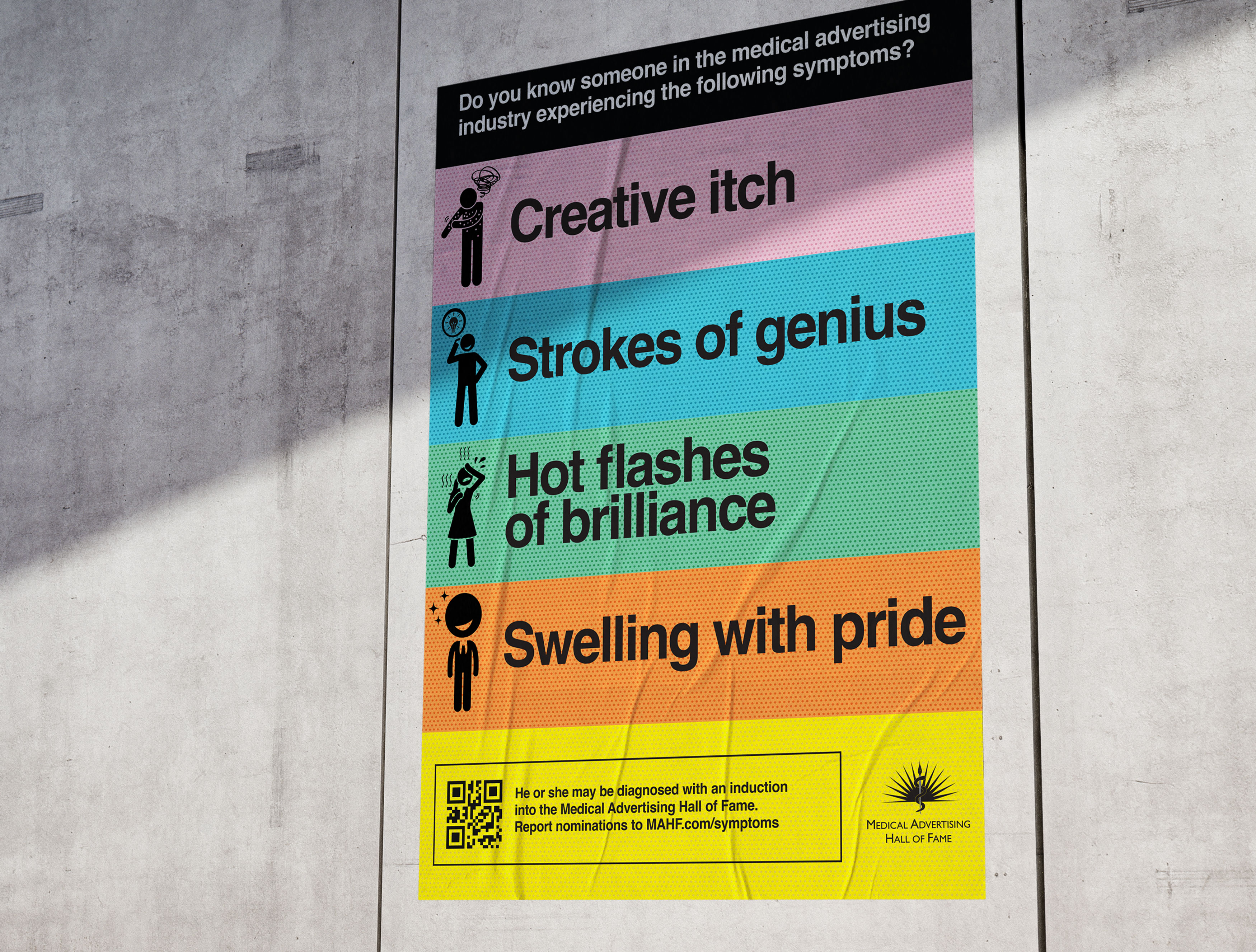 The Medical Advertising Hall of Fame (MAHF) honors the industry's most influential pioneers, nominated by their peers, at an annual awards dinner. An ad campaign was designed to drive both nominations and ticket sales for the event.