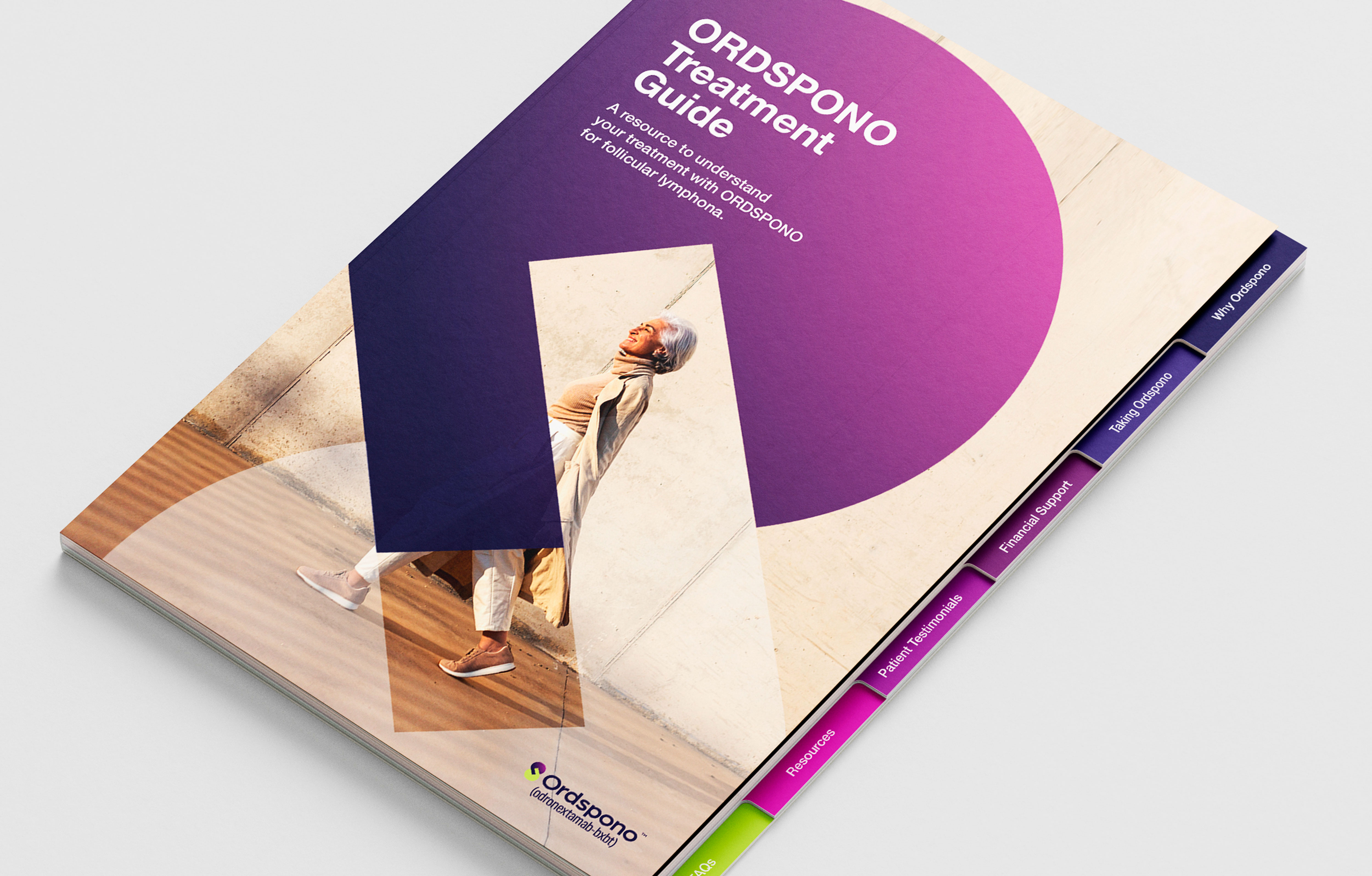 Ordspono, Regeneron's first approved bispecific antibody for follicular lymphoma, offers outpatient administration with the potential for complete remission. The logo, featuring two pieces in an embrace, symbolizes the vital partnership between patient and oncologist.